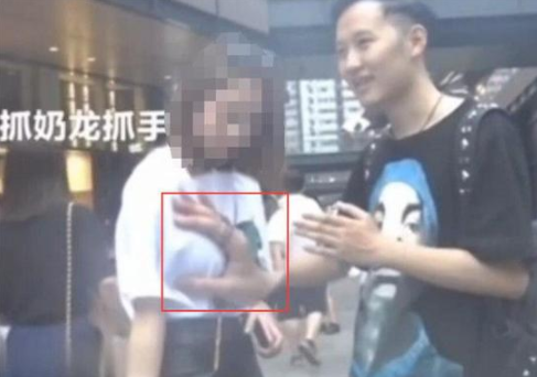 ▼男子的手趁機點在女子的胸部位置,甚至趁機伸出「抓奶手」。翻自《網易》