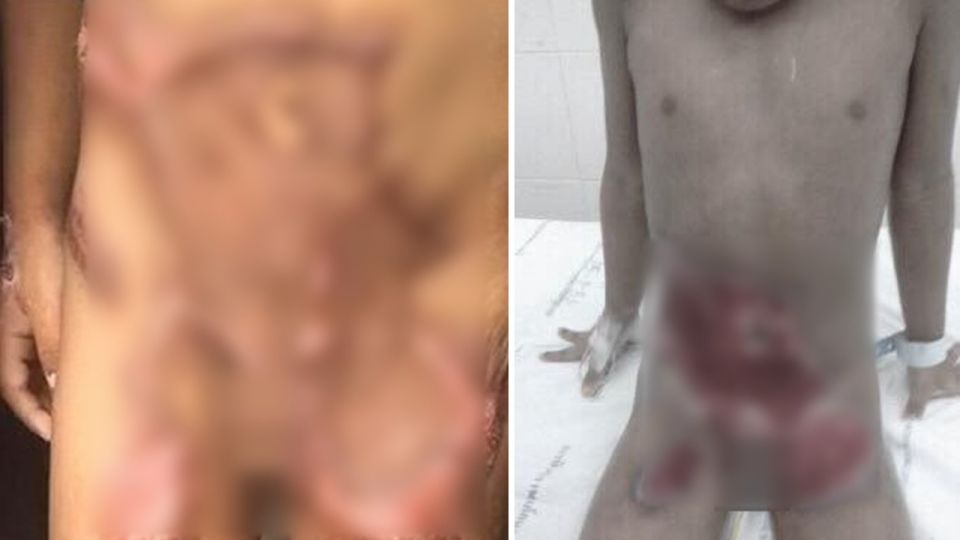▼男童腹部與下體有嚴重燒傷(圖/翻攝自英國《都會報》)