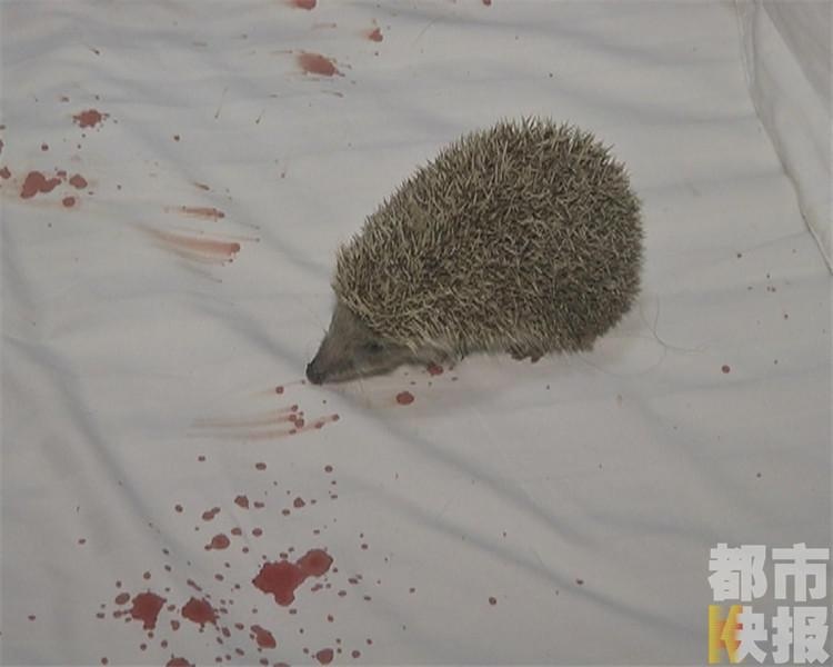 ▼女房客遭刺蝟「襲擊」後,血噴滿床。(圖/翻攝自鳳凰網微博)