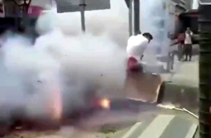 ▼鞭炮被點燃(圖/翻攝自梨視頻)