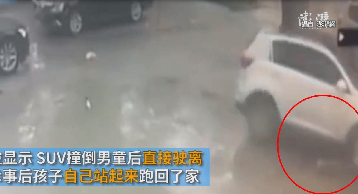 根據陸媒綜合報導,男童哭著跑回家,媽媽以為他是摔倒了,直到睡醒之後,男童才告訴媽媽自己被車撞,媽媽看完監視畫面驚恐的表示「我真以為俺孩子就沒命了」。