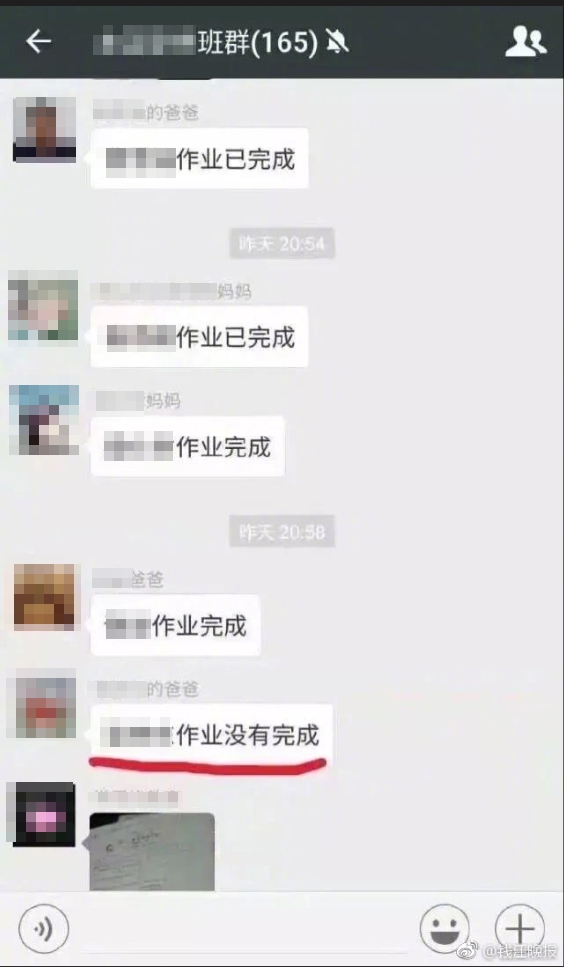 ▼該名爸爸在群組裡直言「兒子作業沒完成」。(圖/翻攝自錢江晚報微博)