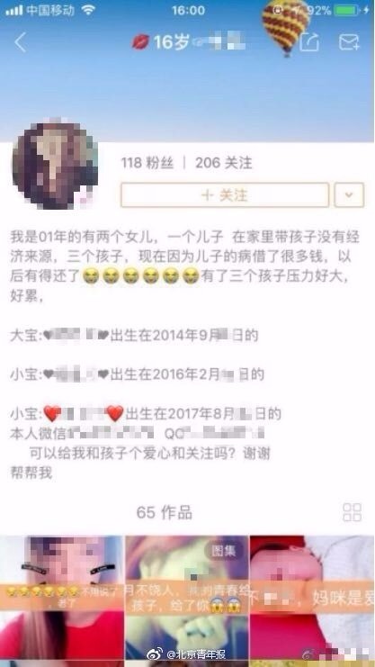 像是一名少女和她剛誕生8天的寶寶合照,表示「我雖然15(歲)但是我不會後悔的」,另一張照片中,16歲的女孩雙手指著渾圓肚皮,寫下「快5個月了,給個祝福吧」,獲得5,689個「喜歡」。還有個年僅16歲的媽媽已經育有三個孩子,分別是3歲、1歲及2個月大的寶寶,令人咋舌。
