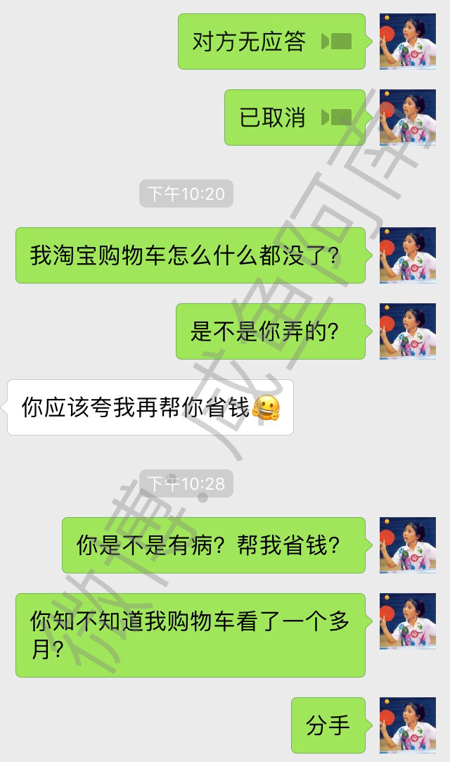這讓女子感到非常生氣,便質問男友是不是他做的,「我看到喜歡的全部添加購物車,沒有收藏,想要找回來很費時間」,當時女子真的氣炸了,於是一怒之下開口說要分手、刪好友、刪手機號碼,而男友什麼都沒說就同意了,讓女子覺得莫名其妙。