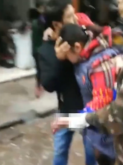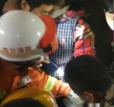 ▼ 女子表情痛苦,救出後需人攙扶。(圖/翻攝自《梨視頻》)