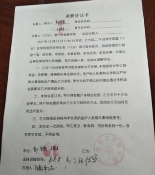 ▼ 校方代表李,和郭生家屬達成協議。(圖/翻攝自陸媒)