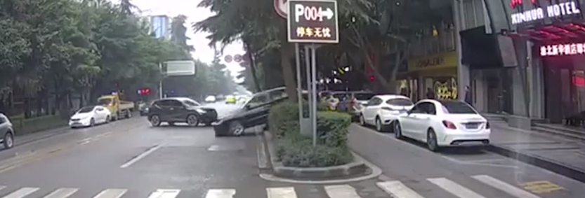 ▼ 接著撞上分隔島。(圖/翻攝自《澎湃新聞》)