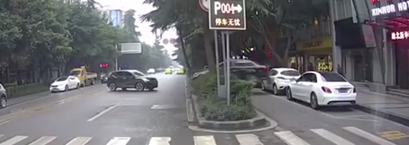 ▼ 肇事車輛突然180度大迴轉。(圖/翻攝自《澎湃新聞》)