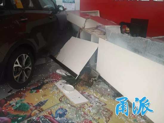 根據《寧波日報》報導,交警到場時,現場滿目瘡痍,一輛咖啡色的SUV撞進了展售中心,把玻璃門和櫃台都毀了。在交警尋找車主時,女子似乎因為還在驚嚇中,叫了好幾聲才反應過來,她告訴交警,自己車子是新買的,花了10多萬,今天來取車,沒想到就出事了。