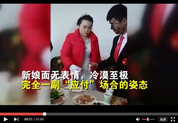 大陸網路上近來流傳一支臭臉新娘的尷尬影片,影片中一對新人正在舉行婚宴,當要舉行