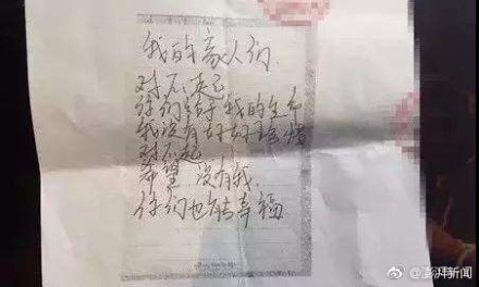 ▼小凱留給家人的遺書(圖/翻攝自澎湃新聞微博)