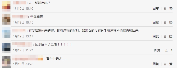 但也有網友認為,拍影片的人愛看熱鬧,「不嫌事大,還高興的不得了,好噁心」,還有人認為,劈腿責任在女方,「那個男的(小王)可能是無辜的!」而有小道消息指出,這段情侶其實是「青梅竹馬」,只不過上大學後不同校,不知是否因遠距離,而讓彼此的感情變質。