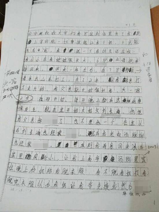 《揚子晚報》報導,2008年,大陸黑龍江一名14歲少女向警方寄了一封舉報信,表示自己未滿7歲就被父親性侵,隨後不只爺爺、叔叔、姨父也對她染指,家人甚至邀來村裡的老師、村主任、鄰居等10多人對她性侵,讓她痛苦地活了7年多。