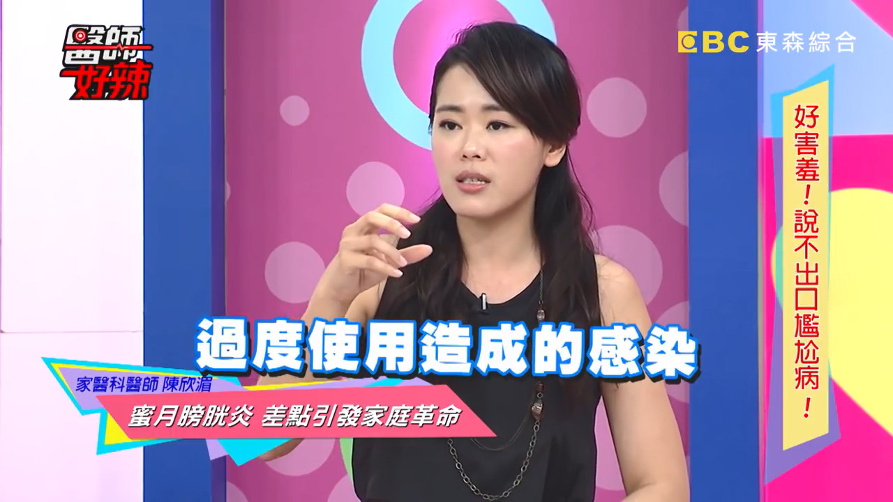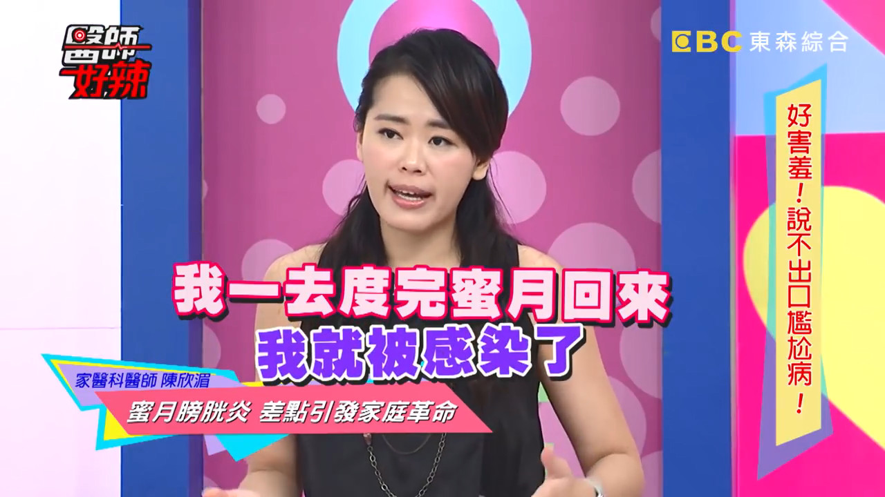 陳欣湄見狀連忙解釋,有一種症狀叫做「蜜月膀胱炎」,尤其在保持很新鮮的性慾望,在蜜月期發生關係的次數會特別多,而女性之所以容易得到,是因為陰道和膀胱的位置太接近,很容易被感染,但是和性傳染病完全沒有關係,單純只是「過度使用」造成的感染,最後終於還給男方一個清白。至於要如何預防泌尿道感染?根據研究,喝蔓越莓汁或服用蔓越莓錠可以有效預防,不過最重要的還是要補充適當水分,以及良好的生活習慣。