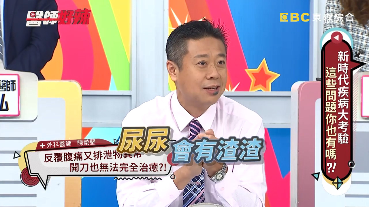 外科醫師陳榮堅在東森節目《醫師好辣》分享案例,透露曾有一名30多歲的男性,一開始有點腹痛,於是做了超音波、大腸鏡和胃鏡檢查,結果都沒事,但大號有血,醫生認為是痔瘡「沒事」,豈料過了7、8個月,男子大號開始忍不太住,有時會不小心拉出一攤水,後來還發現小便有渣渣,而且會反覆發燒。後來再次檢查,赫然發現男子的大腸和膀胱中間的廔管有互通情形,大腸內有大大小小的潰瘍,至少20、30個,又做了膠囊內視鏡後,發現末端的小腸也有潰瘍。