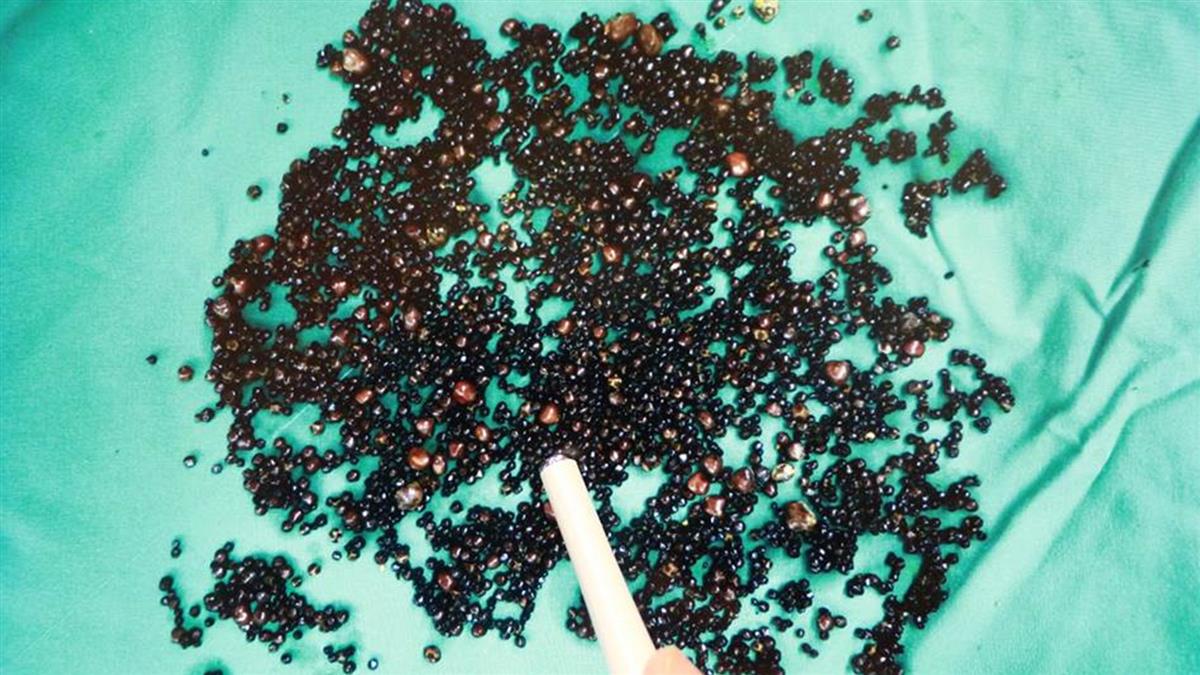 ▼17歲高中生膽囊中漂著至少五顆結石。(圖/錢政弘胃腸肝膽科醫師臉書粉專)