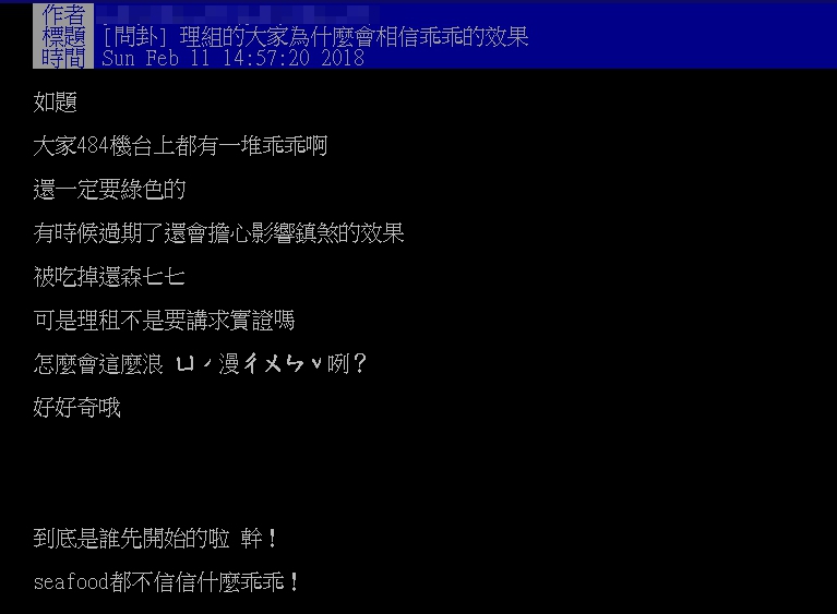 迷信,相信這個都市傳說呢?文末,他還表示,理組的人都不信seafood,「信什麼乖乖!」