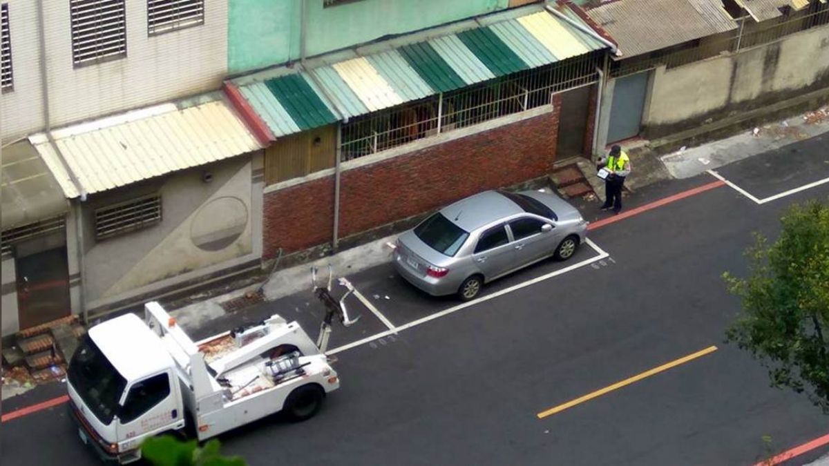 ▲網友從自家窗戶向外看,目睹一台停在停車格內的轎車遭拖吊,大感意外。(圖/翻攝爆廢公社)