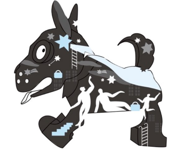 五行中的金,代表色為黑,黑是最為寧靜的顏色,有著無限的可能。在臺北的理想生活即是像在黑夜中的星辰一樣,可以寧靜,也熠熠閃耀,充滿希望和各種可能性。元素中的星星象徵希望與夢想,行李代表從各地來此的旅人,階梯則代表著追尋。