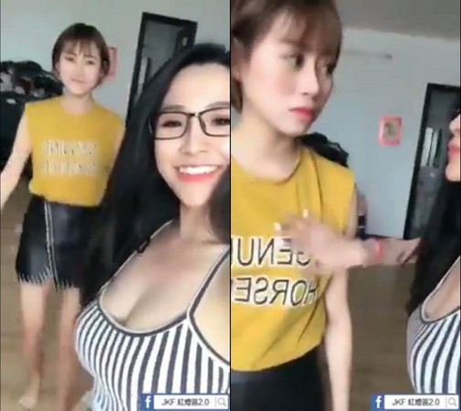 影片中可以看到,一名傳著黃色衣服的短髮正妹將手伸出擺平,而後方戴著眼鏡的長髮妹則直接挺著胸步走過去給對方「放肆」的抓胸部,好感情一覽無遺;他們的男性友人還湊熱鬧,直接扒開自己的衣服露點求摸。最後換眼鏡妹反摸時,才發現短髮妹胸前甚麼都沒有,讓網友直接笑翻。
