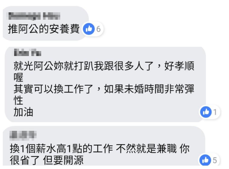 ▼女網友每個月支出1萬元在阿公的安養費上,相當孝順。(圖/《爆廢公社》)
