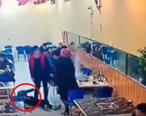 從影片中可看見,男子在與朋友小酌一番後,從位置上起身,卻連站都站不穩,整個人身體往前倒,一旁的朋友雖伸出手想要拉住男子,卻仍來不及,眼睜睜看見男子一臉栽進火鍋裡,身後的椅子還被男子的腳踢倒。朋友嚇傻後趕緊將他拉起,男子痛得跌坐在地,並發出慘叫,畫面怵目驚心。