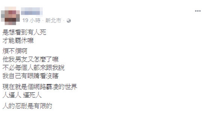 俗辣哥」,瞬間成名。沒想到今(3)該名男子的女友突然在臉書PO文,對網友的譏諷感到不滿,抱怨「是想看到有人死,才能罷休嗎!」