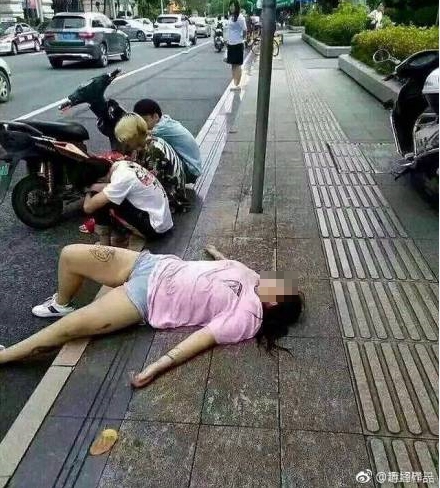根據《柳州播報》報導,大陸廣西南寧一間酒吧街附近,有一名女子倒在路邊被人拍下來。只見照片中,一名身材豐腴的女子身穿粉紅色上衣,配上牛仔熱褲和球鞋,大字形橫在躺路邊,看起來就像是昨晚喝到爛醉,身旁還有3名男子排排坐,卻理都沒理這名女子。