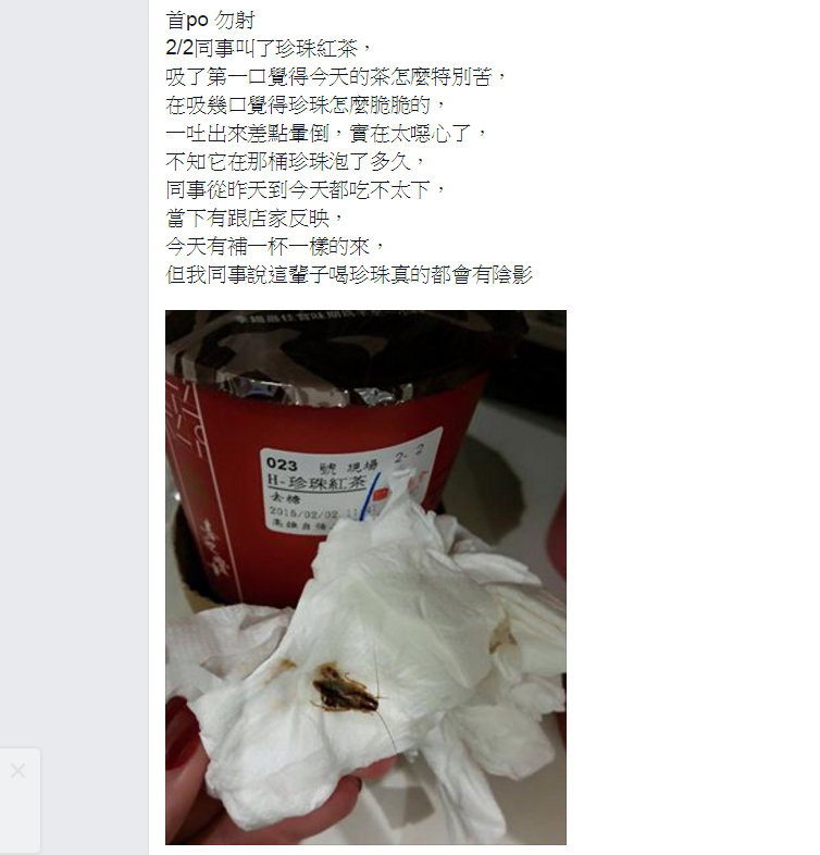 雖然網友有表示,店家立刻補一杯一樣的來,但是這輩子喝奶茶應該都會有陰影吧。