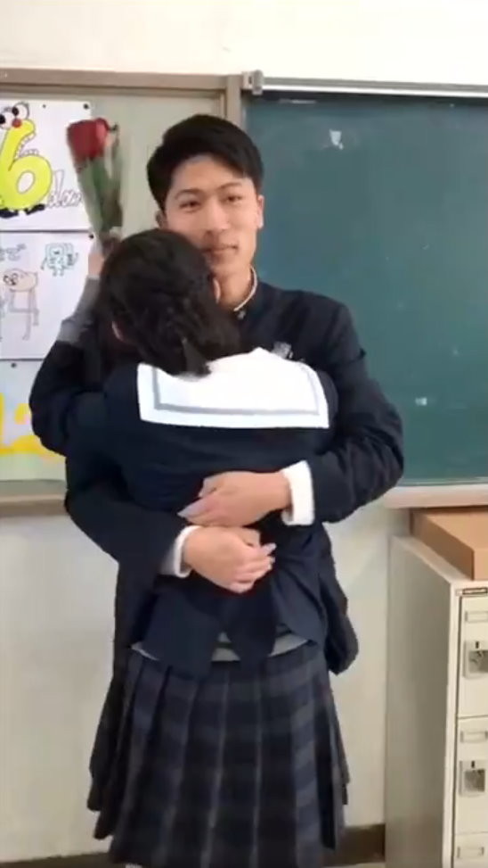 復合一起上大學,順利獲得女方的同意,兩人甜蜜相擁讓其他人看了好羨慕。女學生事後直呼「這就是青春啊」,告白影片短短3天超過200萬人觀看。