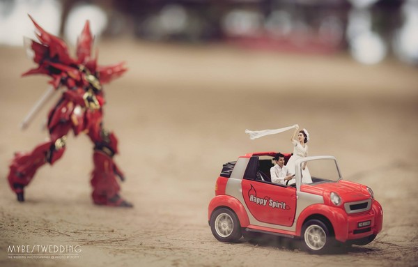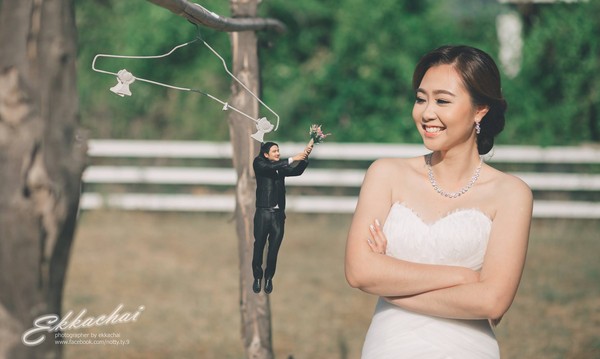 婚紗照花樣越來越多,以絕美風景為見證,上山下海也要留下美美的回憶;不過現在又多了項新選擇,泰國攝影師คนตัวเล็ก在臉書PO出一系列超特別的婚紗照,新人們像被縮小燈照到一樣,通通變得好迷你!
