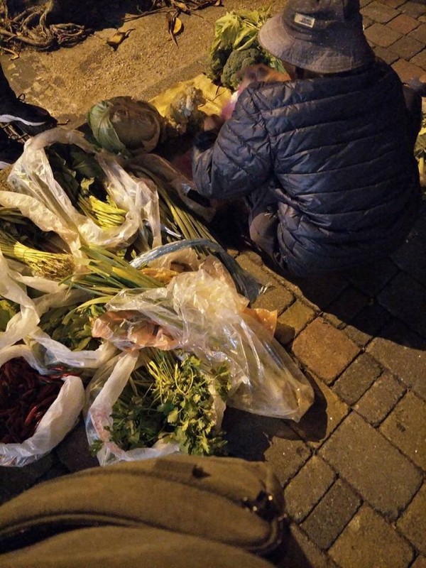 ▼阿婆夜間蹲在路邊賣菜,讓網友不捨。(圖/爆怨公社)