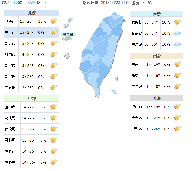 ▼23日至24日天氣預估。(圖/中央氣象局)