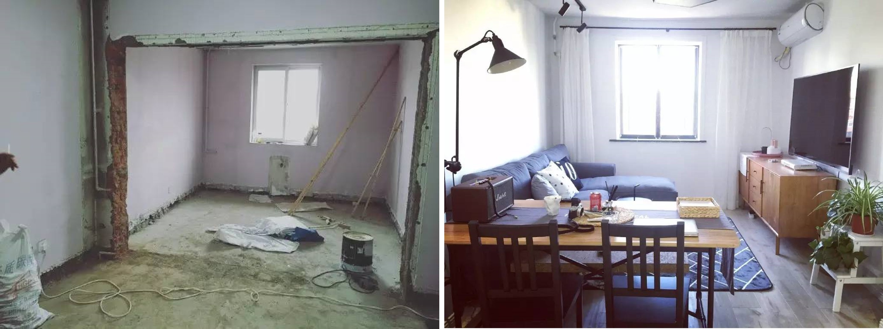 ▼先將客廳與次臥的牆壁打掉,從2室1廳變成1室1廳,空間瞬間增大,再也沒有狹窄的壓迫感(圖/翻攝自Allen微博)