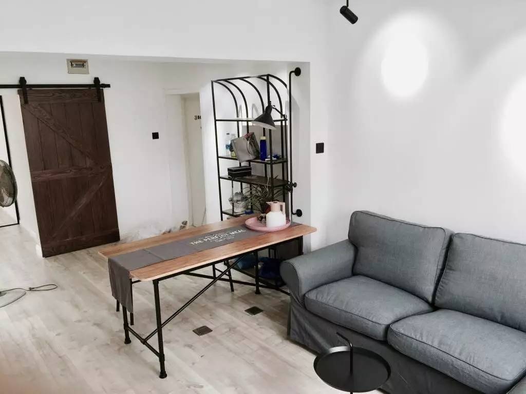 夫妻倆攜手重新規劃空間,先將客廳與次臥的牆壁打掉,從2室1廳變成1室1廳,空間瞬間增大,再也沒有狹窄的壓迫感,添置頂高鞋櫃收納,鞋子不會亂糟糟堆在門前。經重新粉刷,並添置家具後,原本老房的陰森感一掃而空,客廳放了一張木桌,平時可以當工作台,還能當餐桌,同時隔出玄關與客廳的空間。