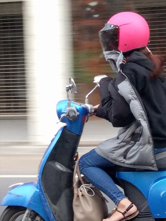 不過下一秒,他才發現那根本不是水痘,而是「隔離霜」,因為只要女子一停紅燈,就會迅速拉起安全帽的護罩,看著小小的後照鏡化妝,只用了短短幾秒時間,就將隔離霜均勻推開,並在紅燈結束前5秒就備戰騎乘姿勢,私毫不拖延起步時間。下個紅燈,女子又擦上粉底,並熟練的依序擦上腮紅、眼影、眼線、睫毛膏、壓粉、口紅,最後在到達台北車站前的最後一個紅燈,完美定妝,看起來神采奕奕。