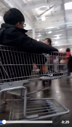 影片中1名穿著灰色上衣的少女目測有16歲以上,看似吃力地推著賣場的購物車,而車裡面竟還塞了年齡相仿的1男1女,看起來相當擁擠。一行人似乎覺得這樣很好玩,就這樣有說有笑地逛賣場,即便有人勸阻「這樣推車容易壞」他們還是依然故我。