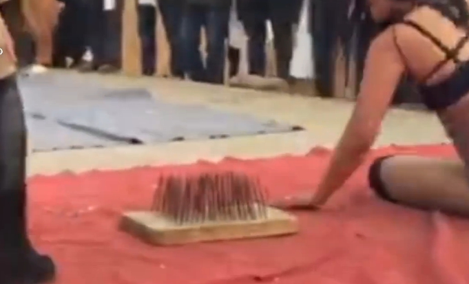 誇張!中國大陸除了有婚鬧文化之外,在喪禮時也會特別請來「戲班子」進行表演,而江蘇連雲港日前有一名80歲老先生逝世,他的家人找來的「戲班子」表演尺度卻相當獵奇!不僅出現男女交疊畫面,還把一名女戲班子的頭壓在鋼釘上,活動長達90分鐘,影片被PO上網後,許多網友大罵:「惡俗!」