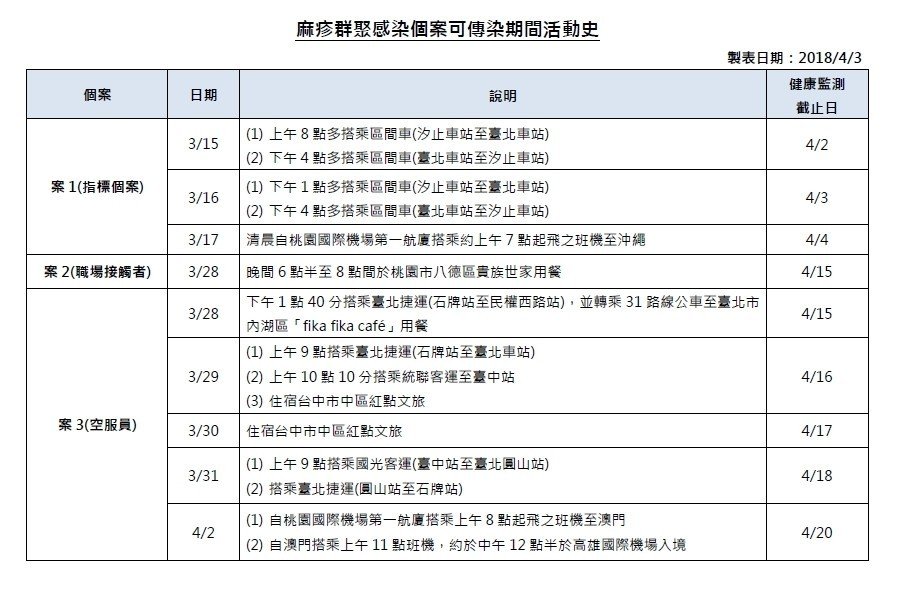 出勤,直到4月2日出現發燒及出疹症狀就醫。