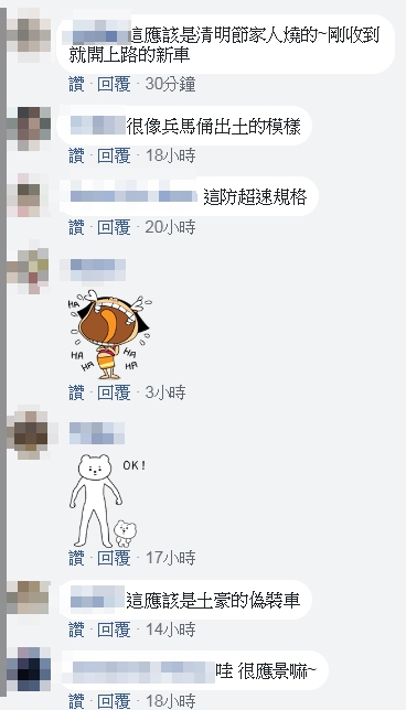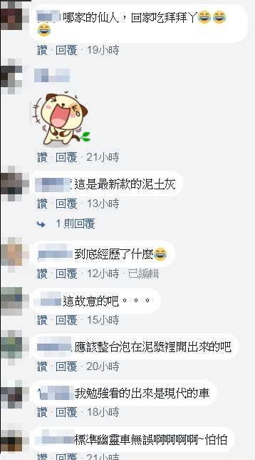 消光灰上市」、「水槍沖下去一定很療愈」、「被泥火山噴到嗎」、「誰家阿祖把車開出來了~」、「幽靈馬車再現嗎?」