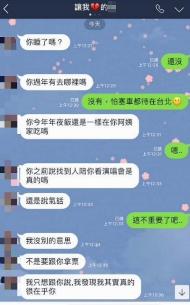 先前一名男子費盡心思搶到2張張學友演唱會的票,想和女友一起去聽,不料卻因為騎車去載女友,被對方嫌沒面子慘遭分手,而這段對話在網路上瘋傳,許多網友狂批女方根本「公主癌」,兩人也因此撕破臉。本以為感情就此結束,想不到女方又回頭找男子求復合,甚至當場上演「吞藥」戲碼,讓男子超無奈。