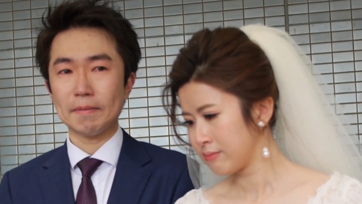 ▼「一定要幸福喔!」 癌末父病床上為女兒蓋頭紗