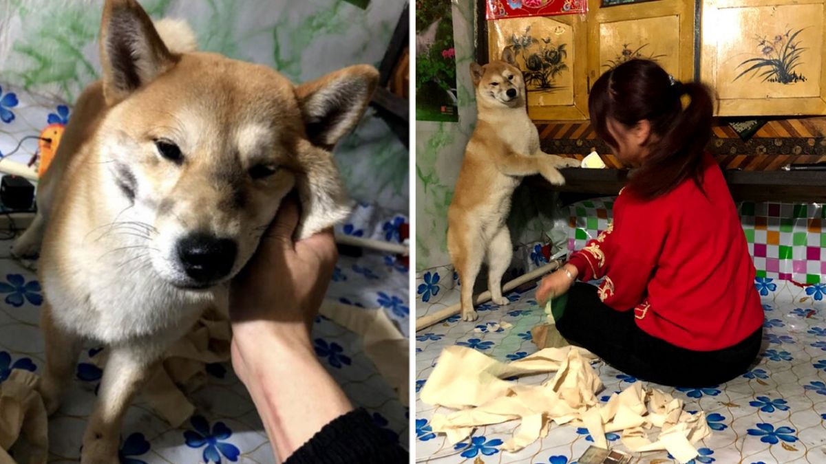 「確認過眼神,我遇見對的人」男網友開始了一場完美的栽贓嫁禍,先是把衛生紙撕碎,並把柴柴的爪子印上眉粉,然後將狗爪印在地板上,並把柴柴的臉抹得髒兮兮。當老婆回家時,看到「證據確鑿」,便讓無辜的柴柴罰站,柴柴則哀怨地看著站在一旁男網友。
