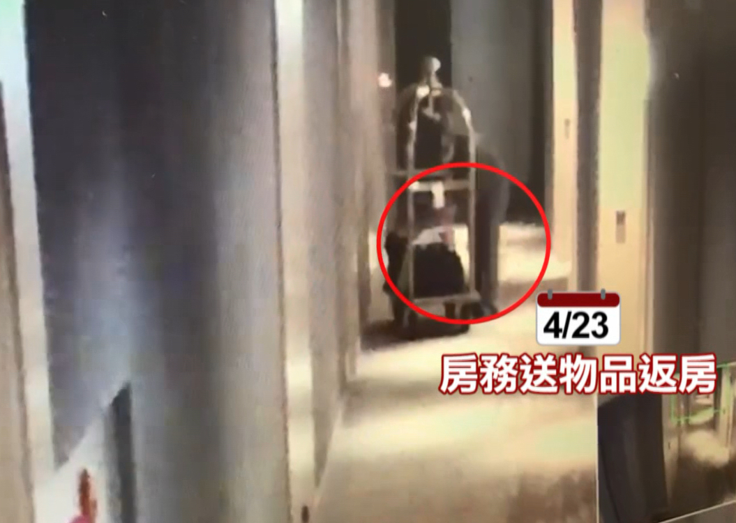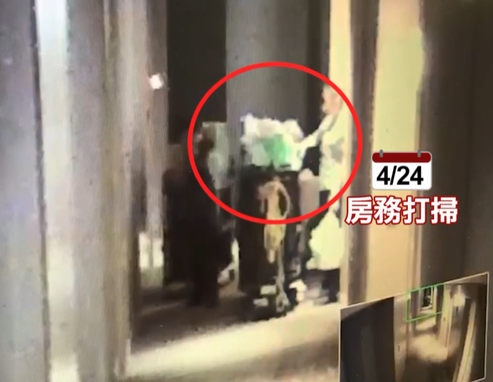 找了好久都沒有端倪,他請飯店調閱監視器,這一調才發現不對勁,23號晚間,因為要用餐,他們特別請房務人員把兩袋裝有東西的袋子送進房間,電眼清清楚楚拍下,東西確實回到房間,但卻在隔天客房清掃時,這疑似裝有東西的紙袋被拿了出來當成垃圾丟掉,這一丟,直到26號投訴人才發現不見,隔天立刻提告。