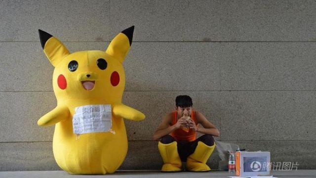 由於工地的薪水都是年底才結算,但現在急需用錢,無法等這麼久,於是劉男決定辭職,由妻子在醫院專職照顧女兒,而他則向道具租賃公司商借布偶裝,每天徒步2個小時走到地鐵站,再穿上「皮卡丘」布偶裝,藉此透過與路人合照賺錢,除此之外也在募款平台上公開募款。