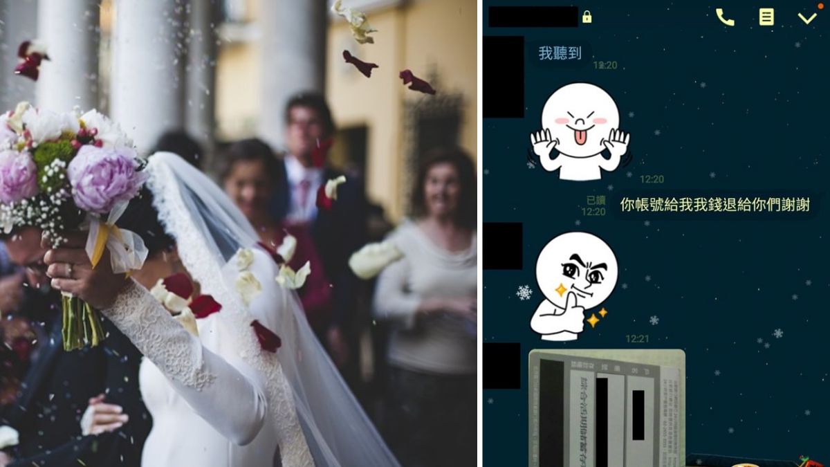 此文一出瞬間引爆網友怒火,紛紛留言表示,「退完款就可以封鎖他了!也不用再聯絡了!大喜之日哪有人這樣說話的」、「1600?好像懂了什麼是大場面」、「講的見多識廣,做的卻是小屁孩幹的事」、「山水有相逢,換他結婚時…」、「他以為自己是包1600美金」、「一開始還以為是朋友間的吐嘈,結果到後來還真的給帳號,這什麼人啊?」