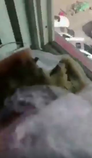 好巧不巧,拍攝者手上就有一塊吃到一半的餡餅,為了讓男子抱得美人歸,拍攝者忍痛捨棄食物,大器地將餡餅丟下樓,掉在兩人之間的地上,爭吵的男女驚愕地看著餡餅,影片也在此結束。