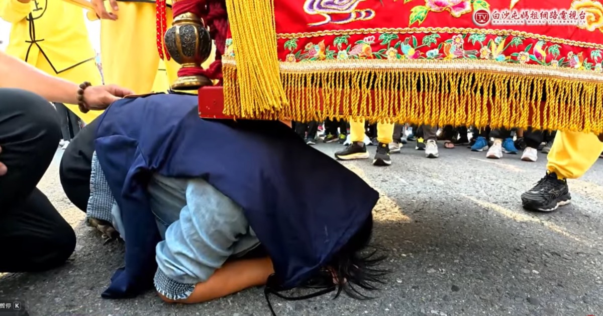 ▼白沙屯媽祖起駕神蹟晃3次,趕路突退後給信徒躦轎腳。圖/白沙屯媽祖網路電視台YouTube