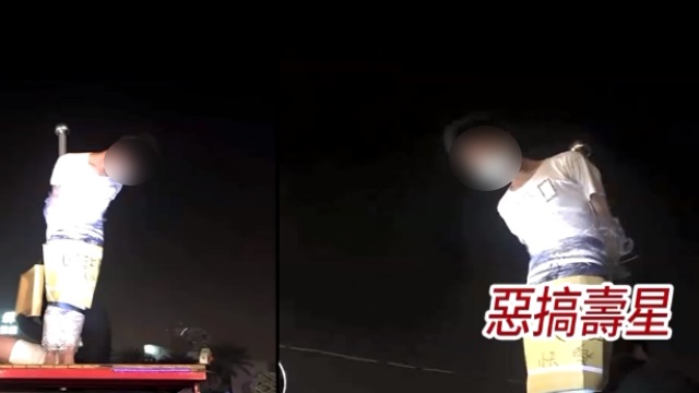 台南有一群年輕男女將壽星綁在吉普車的鋼管上,開著車遊街示眾,甚至把車子開進人潮擁擠的花園夜市。