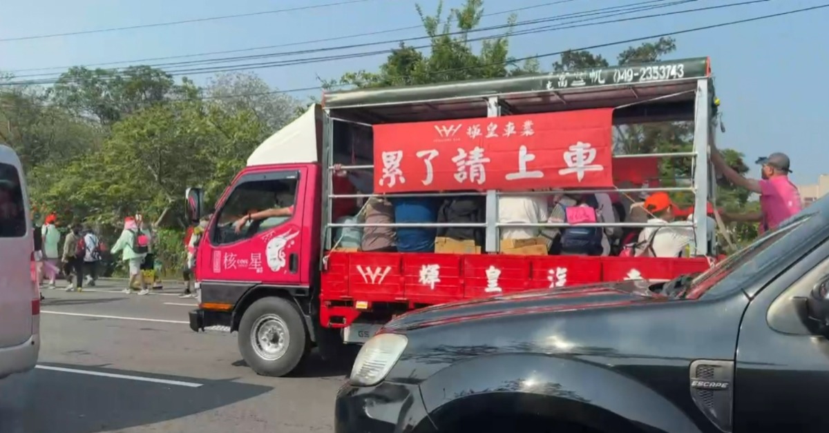 苗栗白沙屯拱天宮媽祖昨(16日)深夜起駕,徒步前往雲林北港朝天宮進香,展開8天7夜徒步徒步往返400公里行程,吸引數萬信徒跟隨其中,此次媽祖鑾轎因為轎頂覆蓋一層粉紅色薄帆布,加上行進快速時,被信徒暱稱為「粉紅法拉利」。沿路鑾轎走到台中原本要趕路沒停,但媽祖卻突後退,重新讓跪地的信眾躦轎腳,被外界解讀是媽祖顯靈!